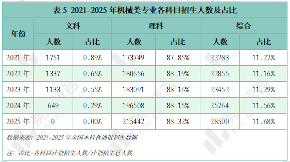 机械类专业招生打算人数逐年添加,